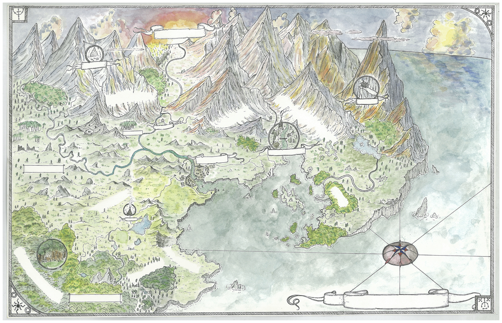 5 4k JPEG files and two bonus photos of a Middle Earth map. One of the maps has blank places that can be used to place location names.